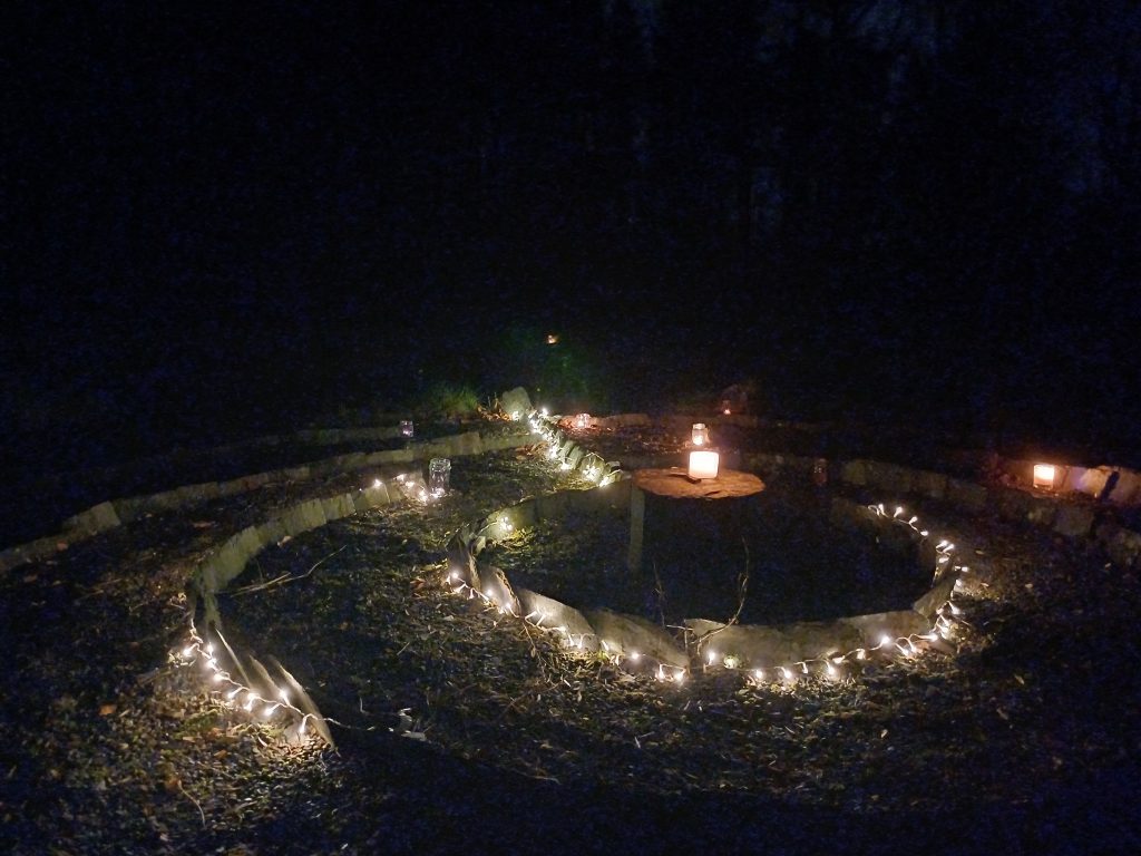 And for those who are less able to manage rough ground in the dark here are some photos and a video of the labyrinth (listen out for the owl!)