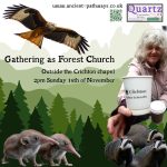 Quartz gathering as Forest Church November 2025 We will meet at 2pm outside the Crichton chapel on the 16th of November. Please dress for the weather! We adapt what we do to accommodate anyone who comes and the weather we find. Peace We will meet in Peace and make peace by meeting. Whether you consider… Read more: November Forest Church - QFC Oct 25