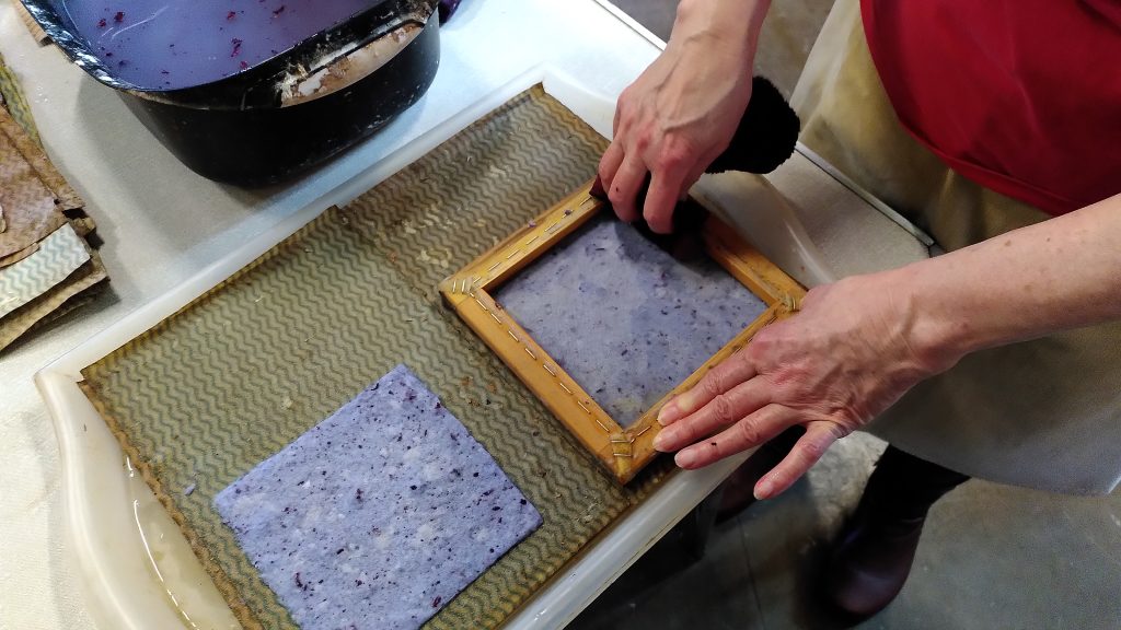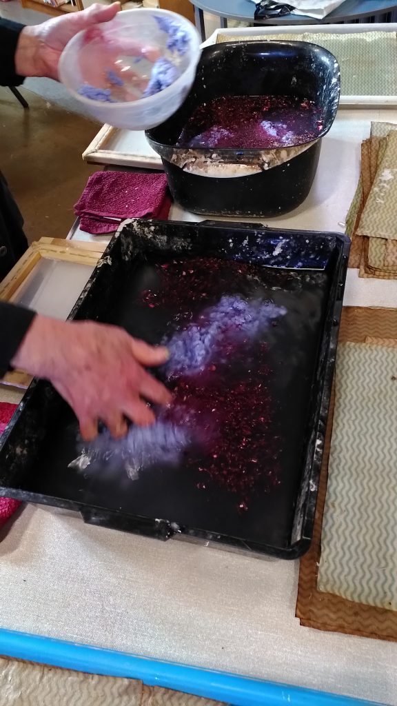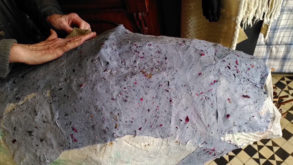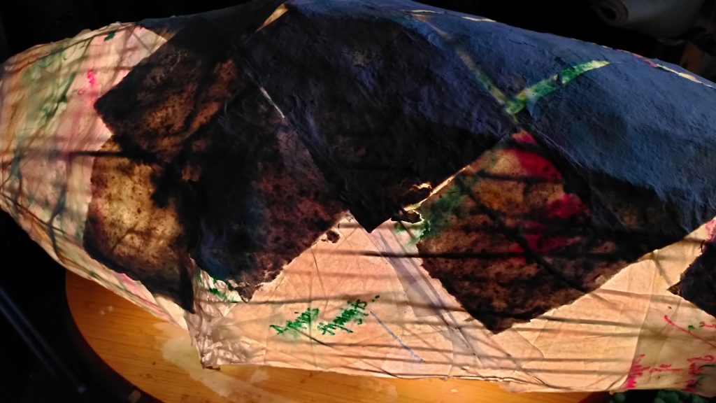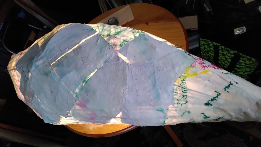 We have been working on the cocoon this week and gradually transforming it into a chrysalis with hand-made paper.