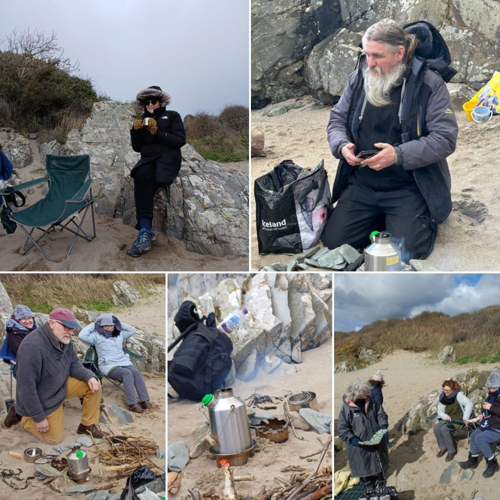 This Easter Sunday fourteen of us gathered further west than in previous years. Storm Dave had blown past by the time we gathered at mossyard beach. It was still quite breezy though! We had decided not to book the Sauna in advance, but it was good to see it in person and this will feature at a future Quartz event.