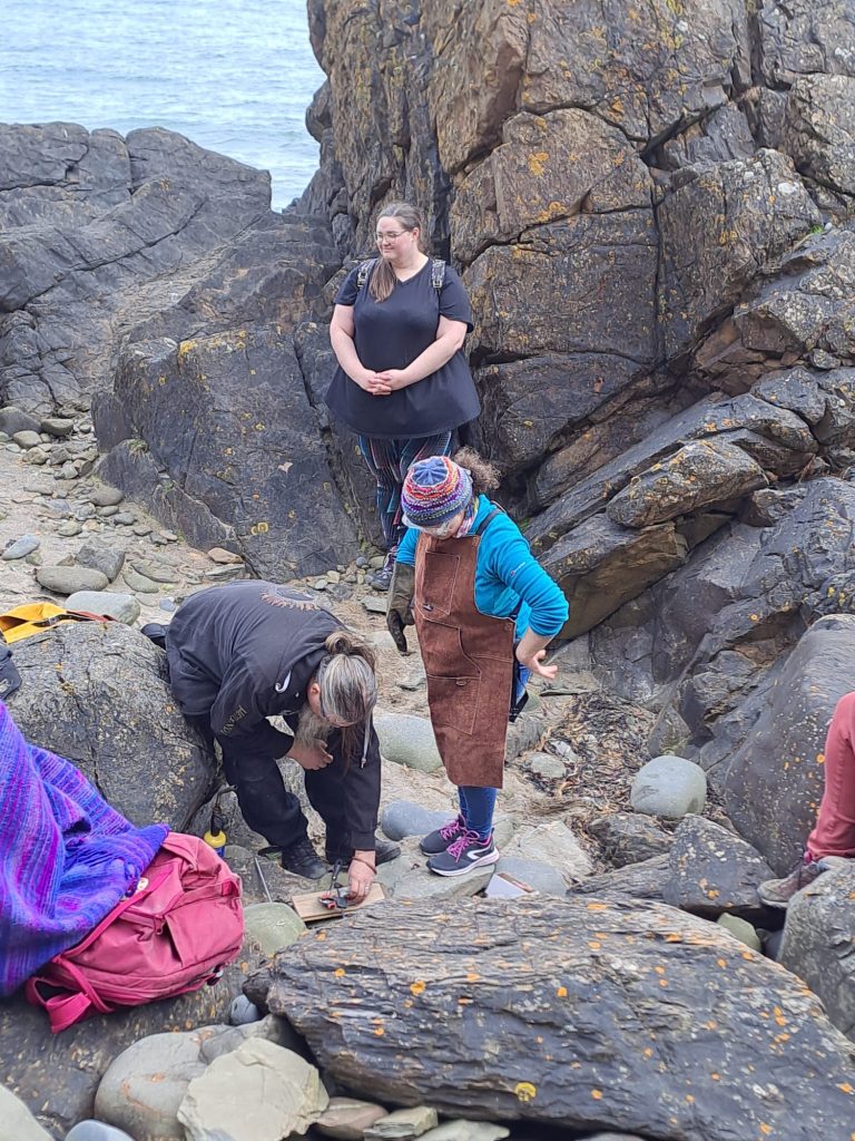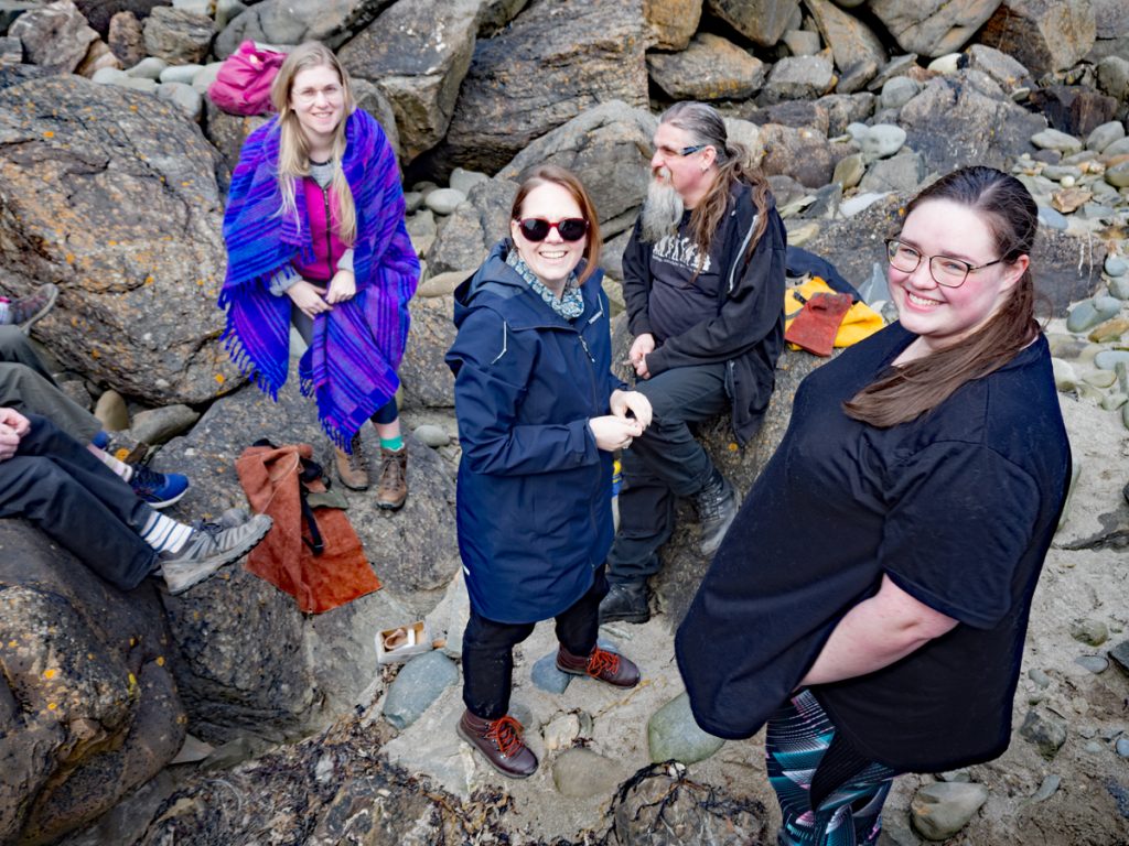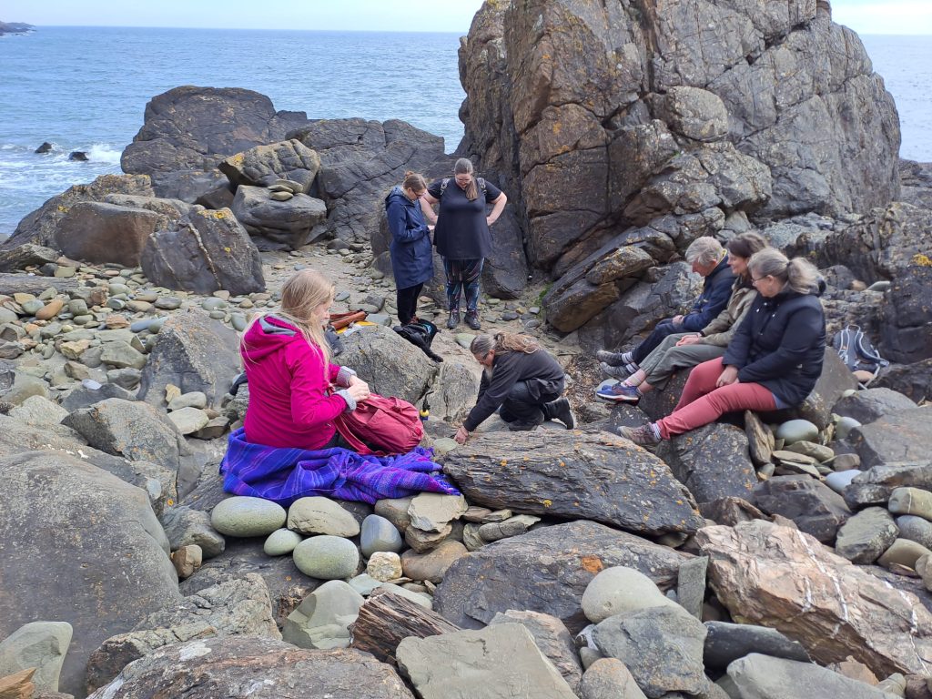 After our break, we took a short drive to the St Ninians cave car park. We left modern transport behind and continued on foot down to the coast. The path leads through a forest, sometimes filled with bluebells although we were there too early for a full carpet. The transition through the wood gives time to slow down, to notice the details of growing things, and to prepare. Moving through space to change ones mindset. Opening ones mind to experience sensations both physical and spiritual that we can become less aware of in the grind of daily life.