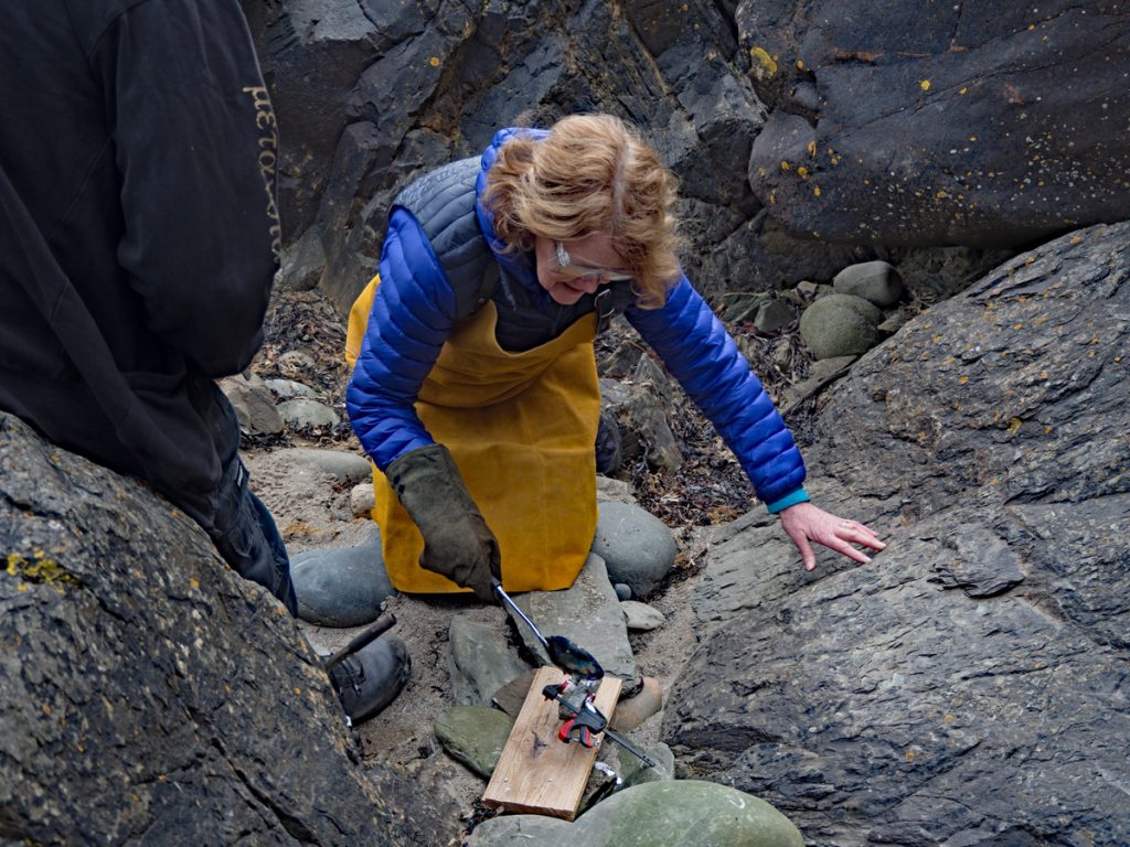 We then approached the cave. There are many caves associated with saints in Scotland and the tradition of finding remote places to sit and contemplate is not unique to Christianity. This cave has been associated with the Story of Ninian for thousands of years. The ornate carved crosses that it once held have been moved to care for them in the town of Whithorn. The surface of the cave and cliff face is covered with crosses and names carved by visitors though. What is it about being in the same physical place as a legend that is so special?