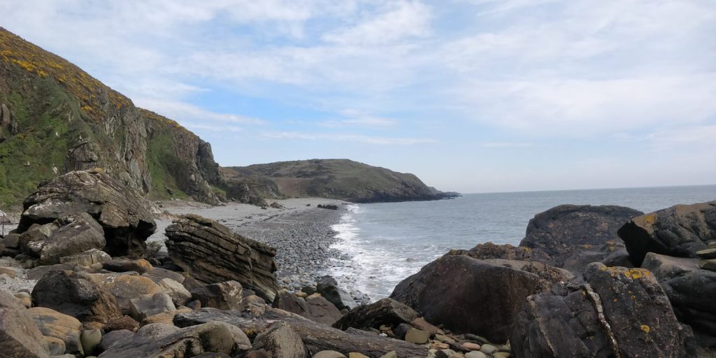The beach is very different environment to the forest. Stone water and sky dominate your experience. There are patterns in the pebbles. If you look out to sea sometimes Mannanan lifts his cloak and reveals the Isle of Man. I often imagine the many ways in which the sea connects us globally. Something which looks like a barrier can become the means to travel and for messages to spread. There is a changed quality in ambient light too. Just standing and experiencing the refreshment of the place without the need to exercise intellect is refreshing for the soul.