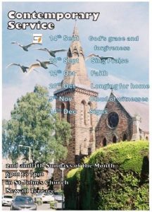 The last contemporary service for the year (or 1st for the new church year) will be on Sunday the 14th of December – the theme is “Signs”